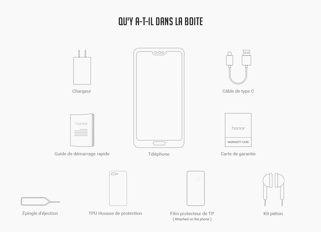 À noter que le Honor 10 n’est pas protégé IP67, ne comporte pas la charge sans fil et n’a pas de port micro-SD. Par contre, il possède une stabilisation numérique pour les photos, une IA (Intelligence Artificielle) pour ne pas rater vos clichés, un lecteur d’empreinte sous le verre qui peut être utilisé avec le doigt mouillé, la charge rapide 5V / 4.5A.