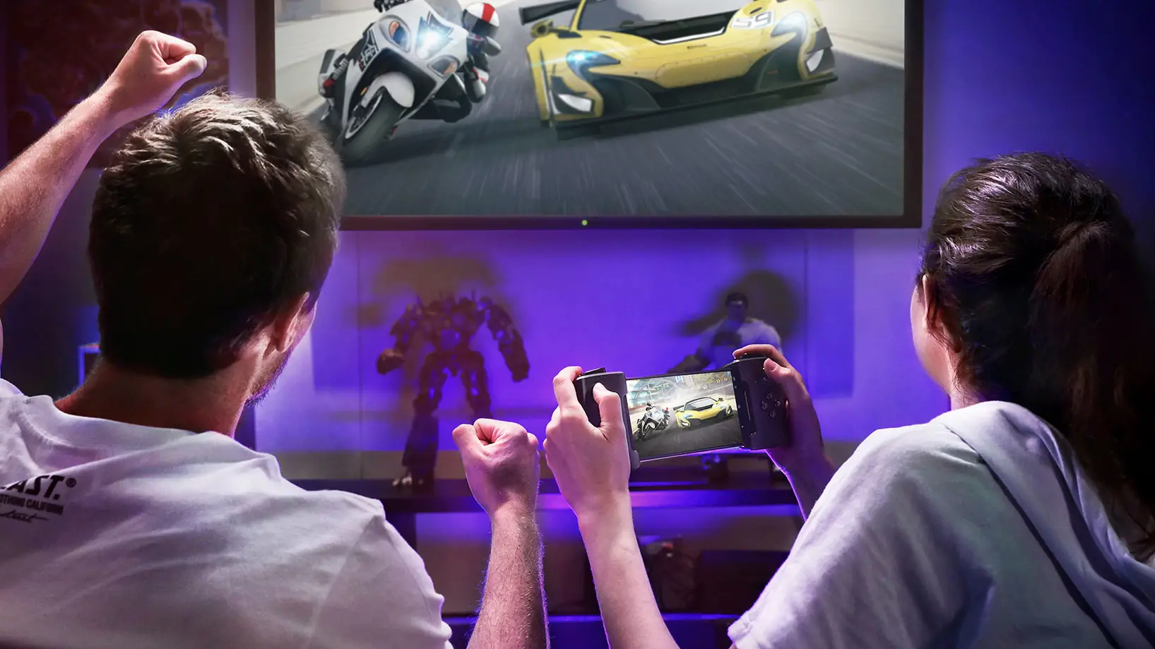 - Le WiGig Dock adopte une approche différente des écrans secondaires en utilisant le WiFi 802.11ad cadencé à 60 GHz avec une faible latence pour diffuser des signaux vidéo à une station de base qui se branche sur le téléviseur. Il se marie avec la manette GameVice, qui englobe le ROG Phone.