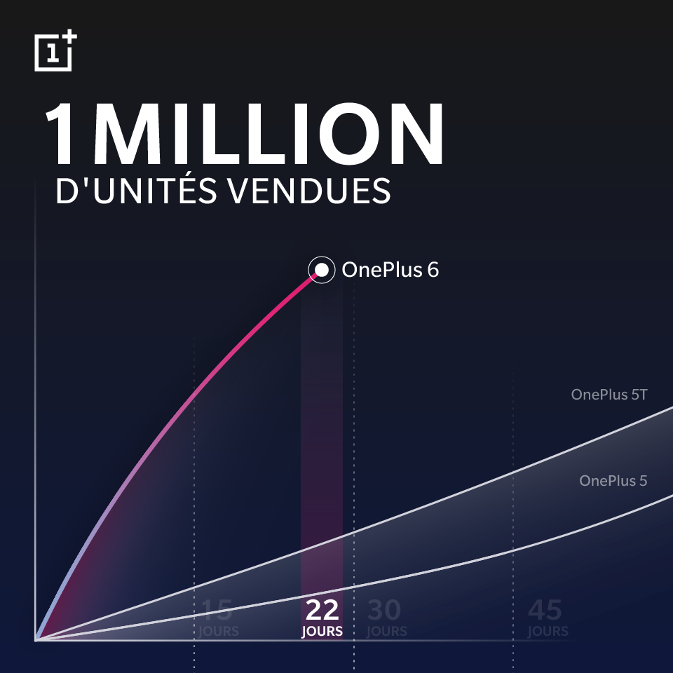 OnePlus a révélé sur sa page Facebook avoir franchi la barre des 1 million d’exemplaires du OnePlus 6 vendus en 22 jours.