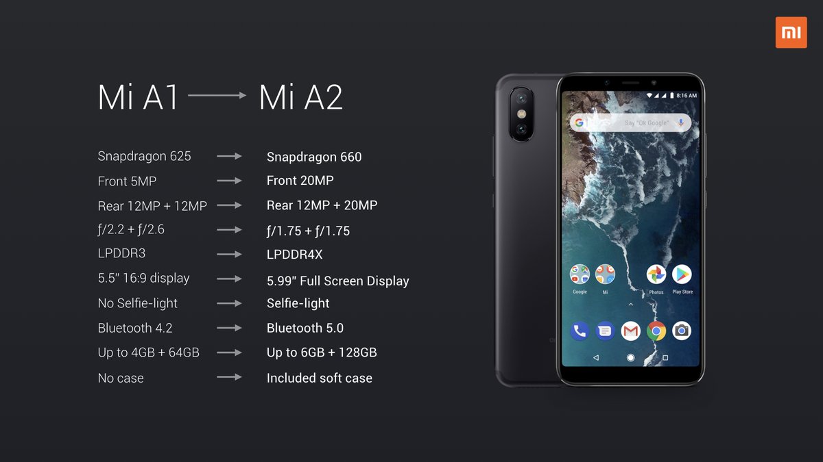 Xiaomi a annoncé la seconde génération de ses smartphones sous Android One, les Xiaomi Mi A2 et Mi A2 Lite, ce dernier étant une nouveauté par rapport à la génération précédente.
