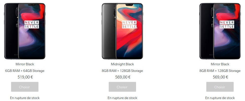 En effet, le OnePlus 6 est en rupture de stock en France, Espagne, Allemagne, Autriche, Italie, Irlande, Danemark, Suède, Lettonie, Lituanie, Bulgarie, Croatie, Chypre. Dans d’autres pays comme en Slovaquie, Grèce et en Hongrie, certaines variantes sont encore disponibles.