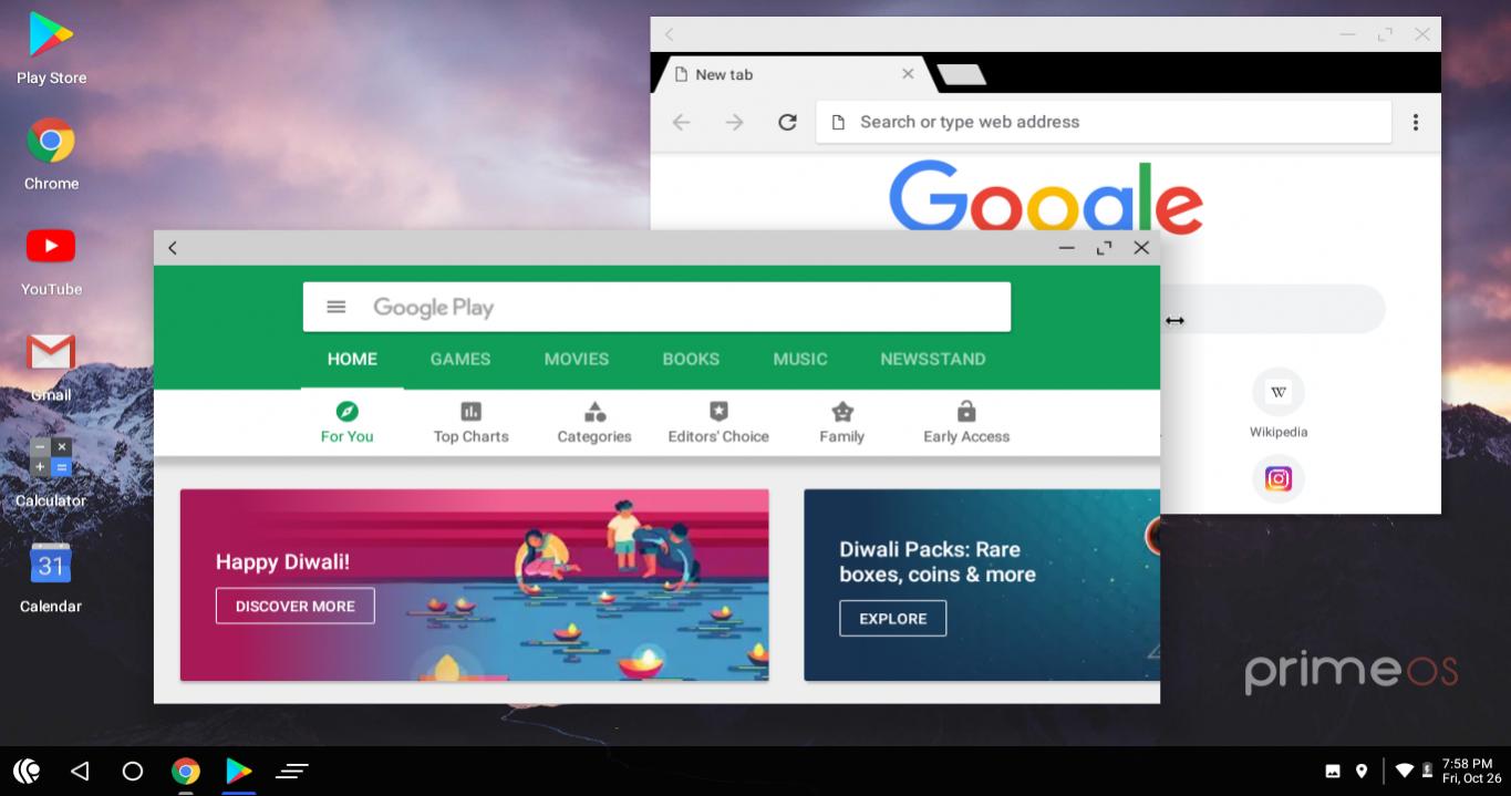 PrimeOS est un système d’exploitation basé sur Android-x86 avec quelques modifications dont le mode multi-fenêtres, une barre des tâches, des raccourcis clavier et bien plus encore. L’expérience utilisateur se veut donc proche de celle d’une distribution Linux classique, Windows ou Mac avec un accès au Google Play.
