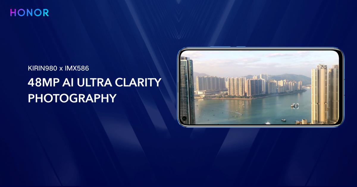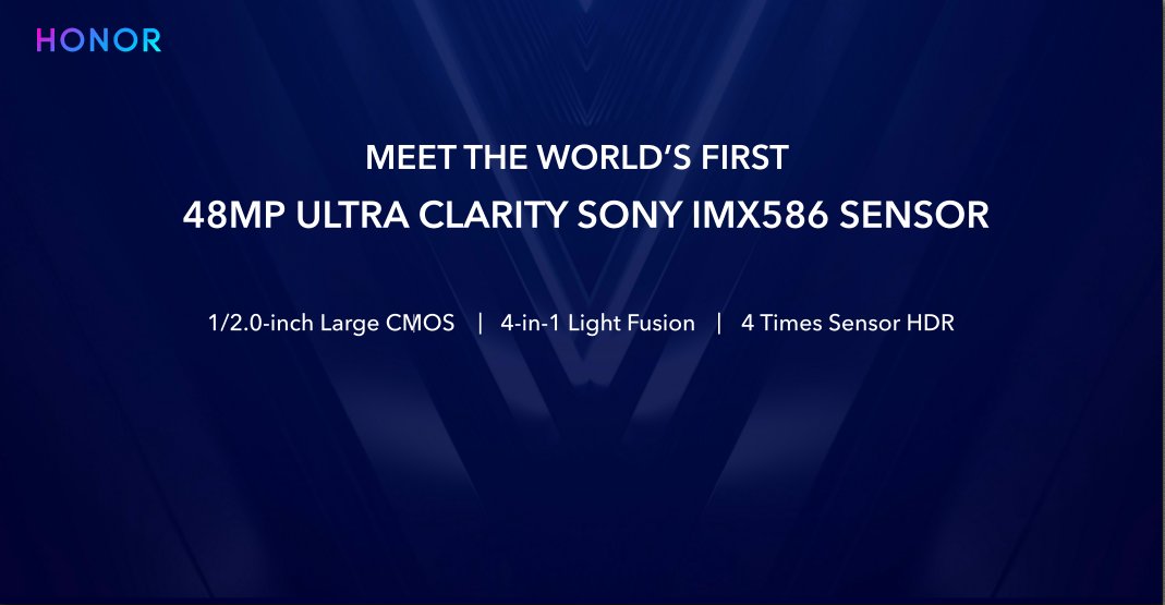 Sur les réseaux sociaux, Honor annonce que le View 20 aura un capteur photo Sony IMX586 de 48 Mpx (annoncé en été 2018) épaulé par de l’intelligence artificielle et le tout dernier processeur haut de gamme de HiSilicon gravé en 7 nm, le Kirin 980.