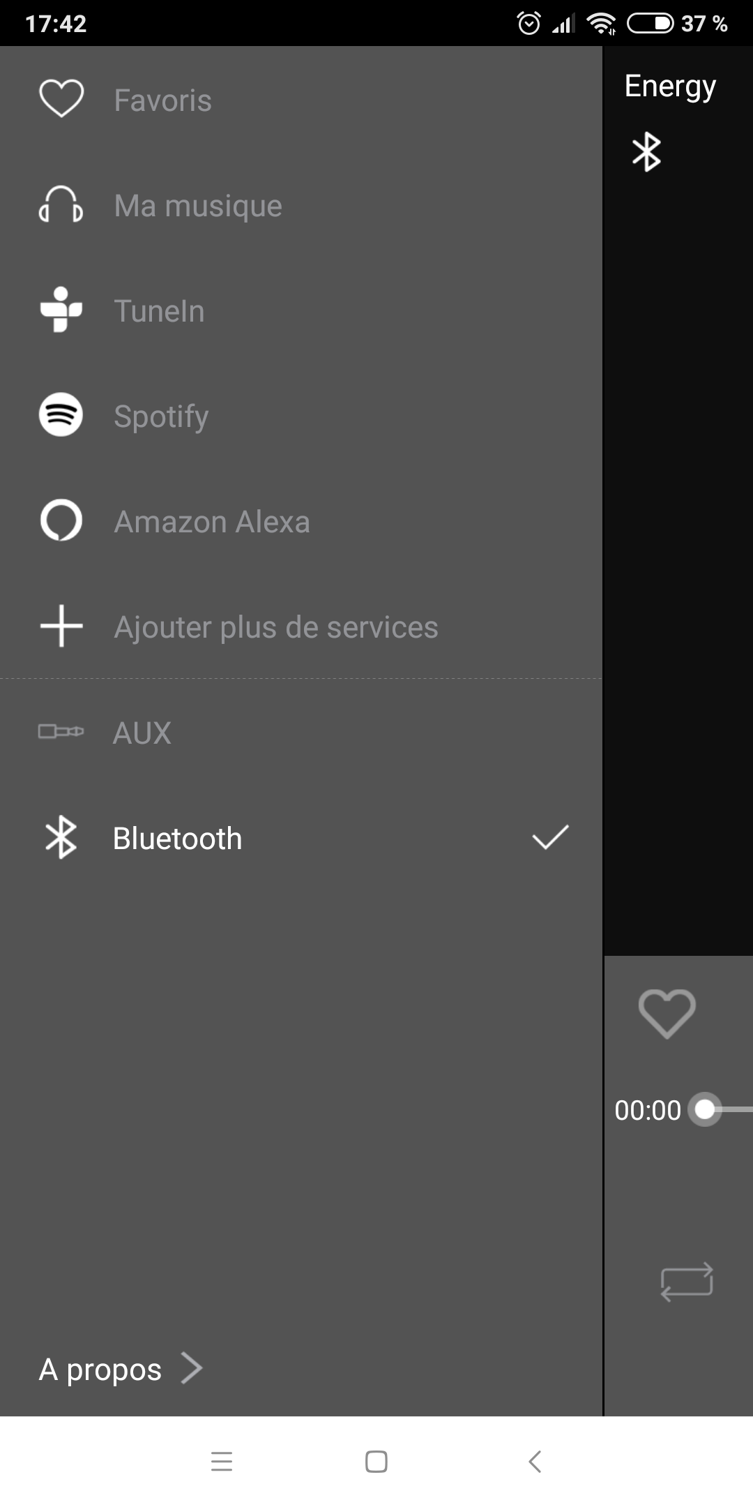 D’autres paramètres sont disponibles dans cette application comme la sélection du mode AUX ou Bleutooth, la configuration d’Alexa, de Spotify, de TuneIn et de votre bibliothèque personnelle.