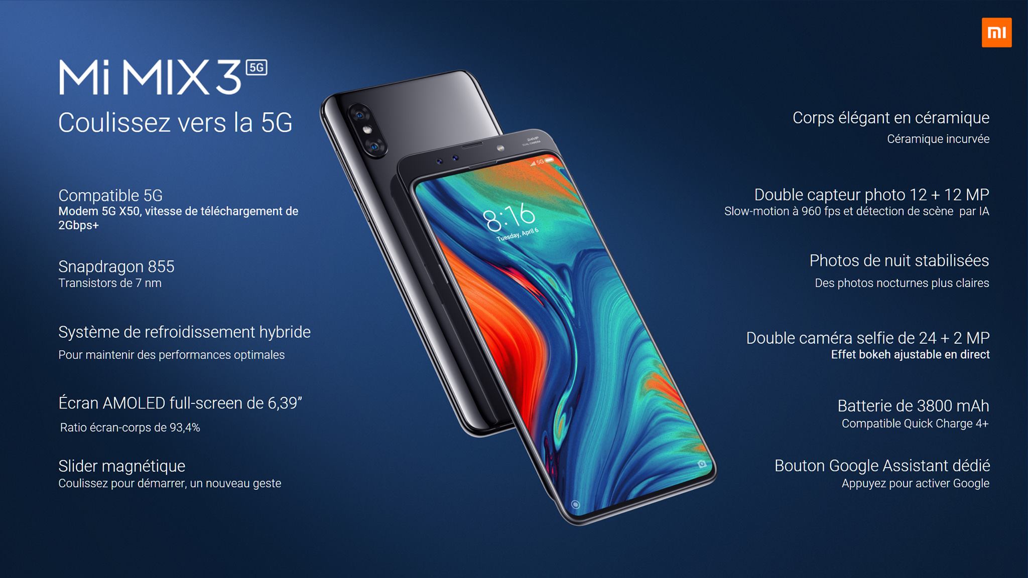 Xiaomi a annoncé sur les réseaux sociaux que la variante 5G du Xiaomi Mi MIX 3 arrivera en Europe le 2 Mai 2019, en commençant par la Suisse qui est déjà équipée de cette nouvelle technologie.