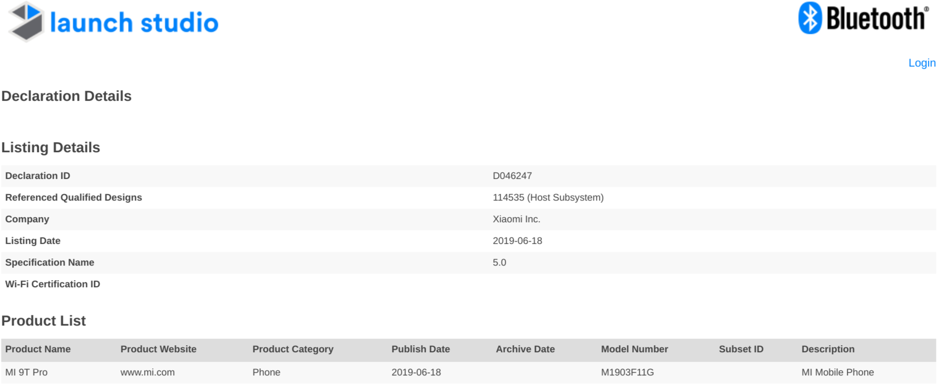 Certification Bluetooth