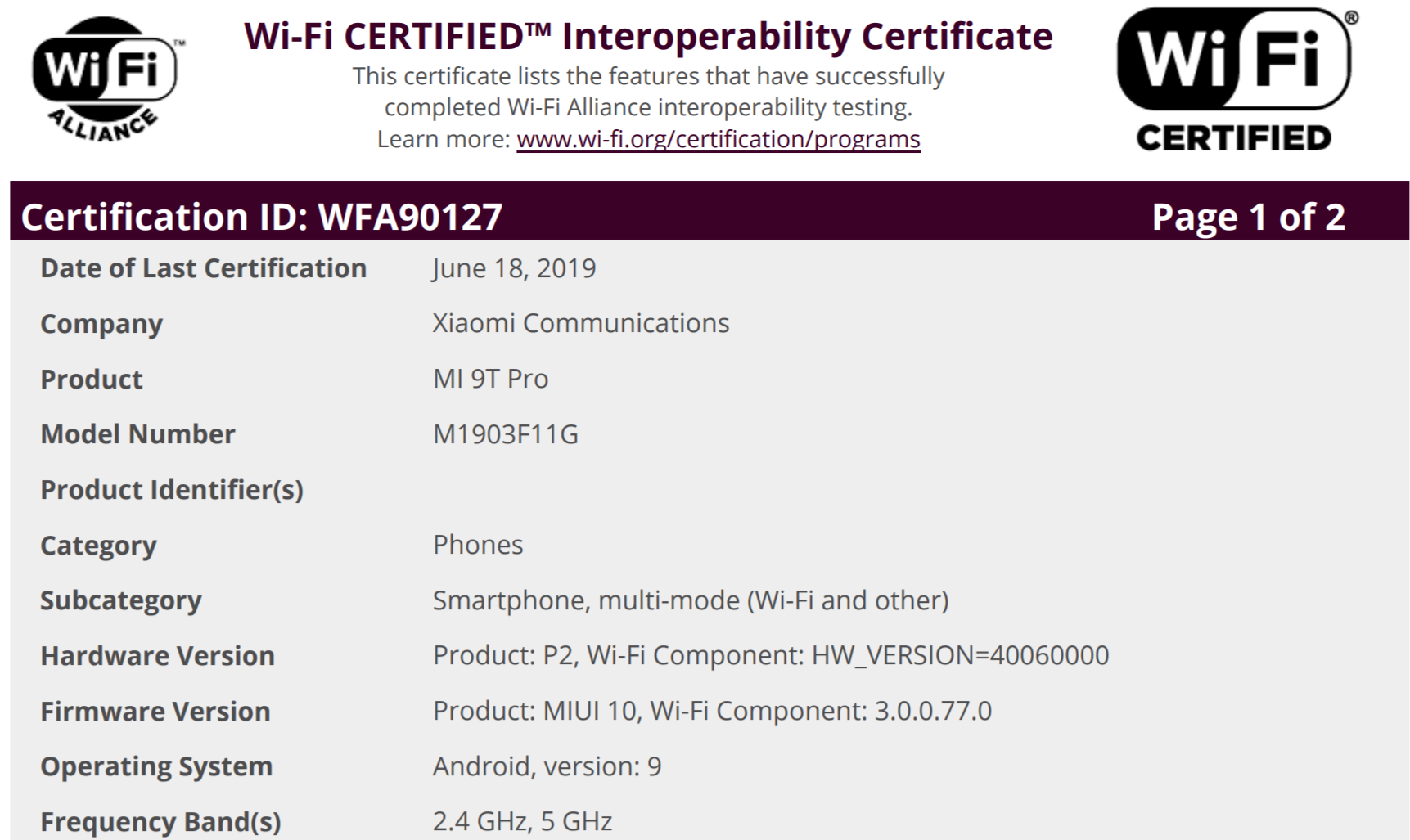 La rumeur du Redmi K20 Pro disponible sous le nom de Xiaomi Mi 9T Pro hors de Chine se vérifie. En effet, le Mi 9T Pro a passé les certifications Bluetooth et Wi-Fi.
