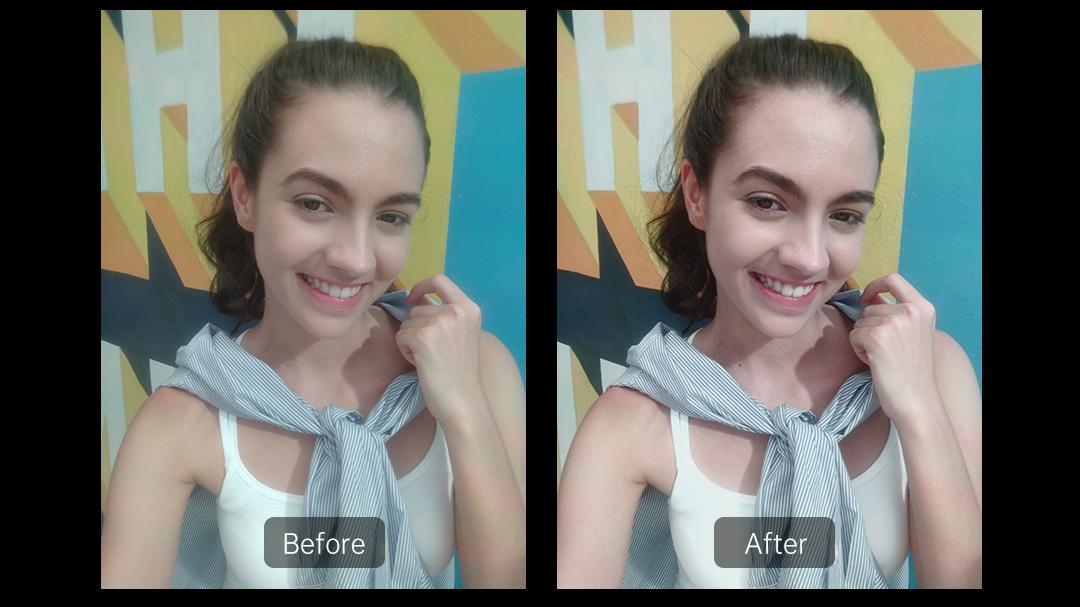 L’exemple ci-dessous, avec un selfie sans les algorithmes à gauche et avec à droite.