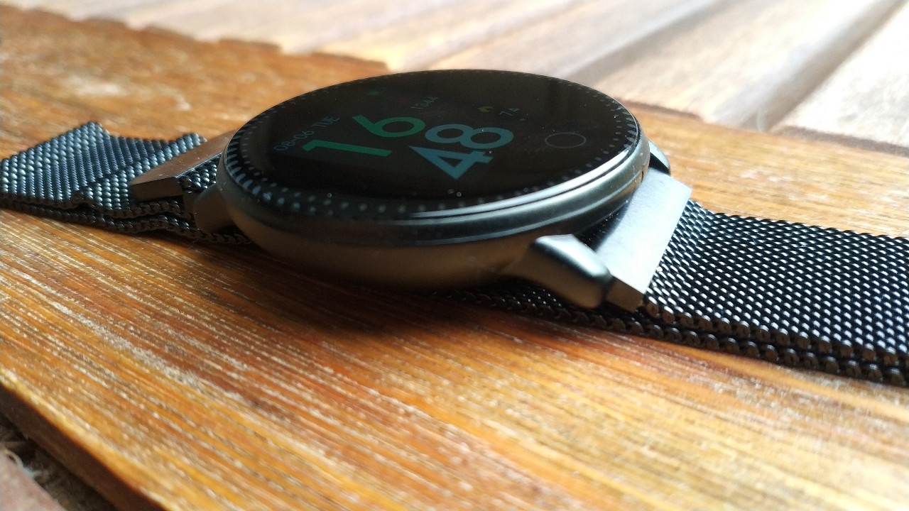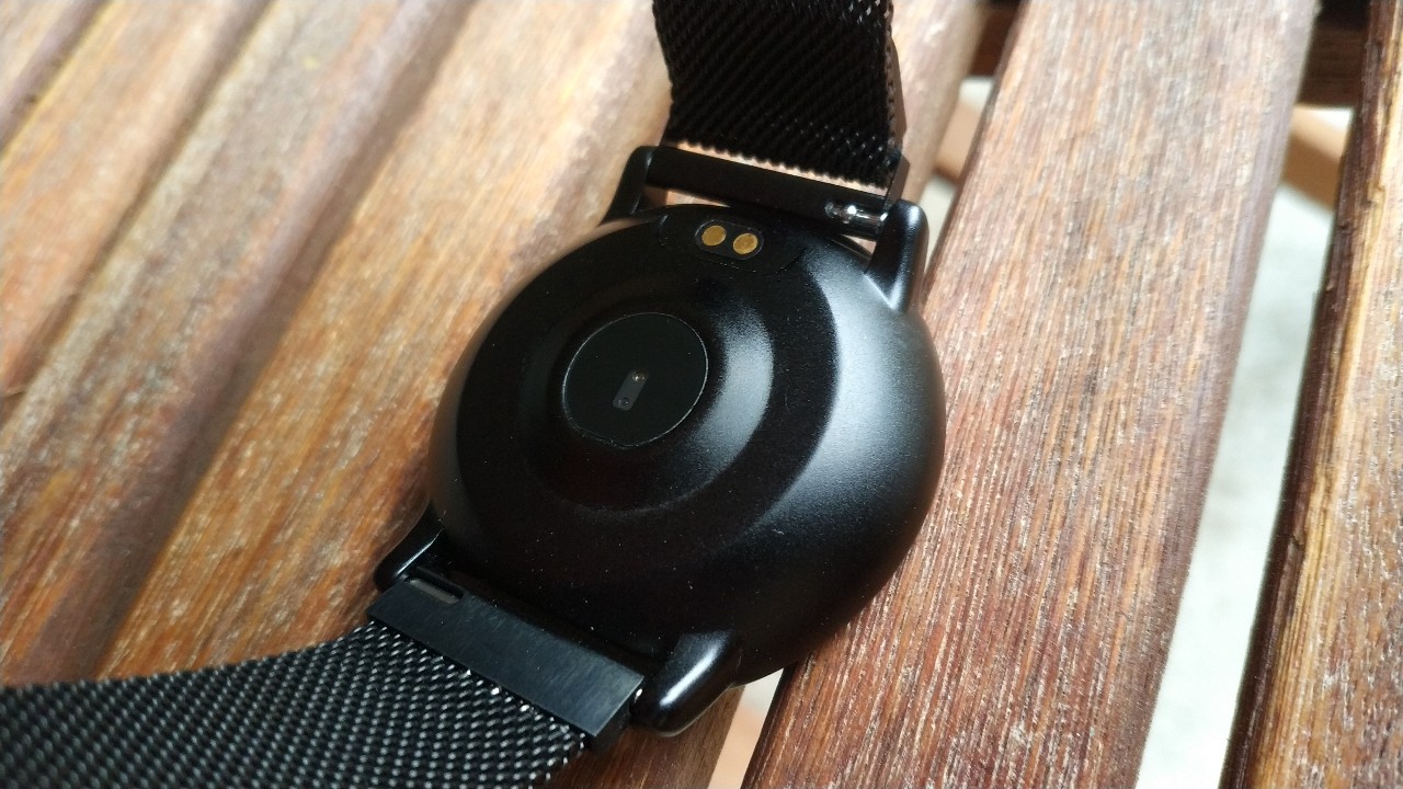 Le châssis est totalement en acier avec deux bracelets, l’un en métal équipé d’un aimant puissant, l’autre en silicone souple comme sur de nombreuses autres montres connectées. La fixation du bracelet se fait manuellement, sans outil, juste en pinçant l’axe de fixation.