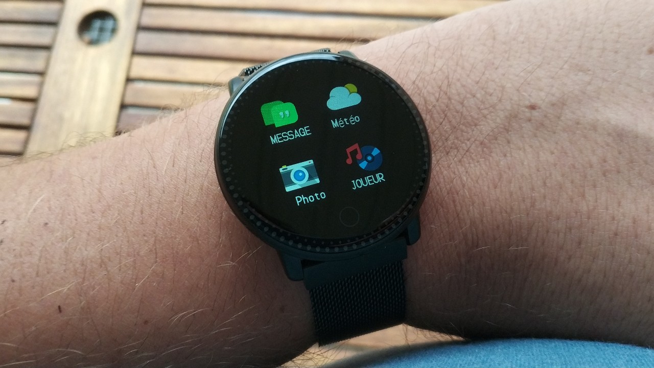 La portée en bluetooth n’est pas aussi excellente que sur un tracker d’activité comme le Mi Band ou le Honor Band, mais le principe est bien de garder son smartphone à ses côtés. Lors de notifications, la montre vibre, mais assez discrètement. L’écran de 240 x 240 pixels, soit le double en largeur par rapport au Mi Band, donne un meilleur confort de lecture des notifications et de la météo.