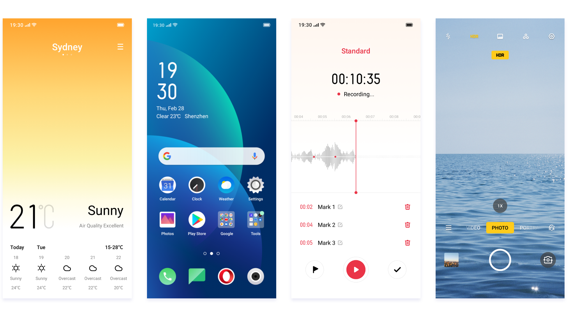 L’interface utilisateur de ColorOS 6 a été entièrement repensée avec une nouvelle page d’accueil, des nouvelles icônes, des nouvelles tailles de polices, de l’intelligence artificielle, des animations repensées, le Game Boost en version 2.0 et bien plus encore. Cette nouvelle version apporte aussi une meilleure prise en main des terminaux à écran sans bord et fait place au thème claire alors que le thème sombre devient de plus en plus à la mode.