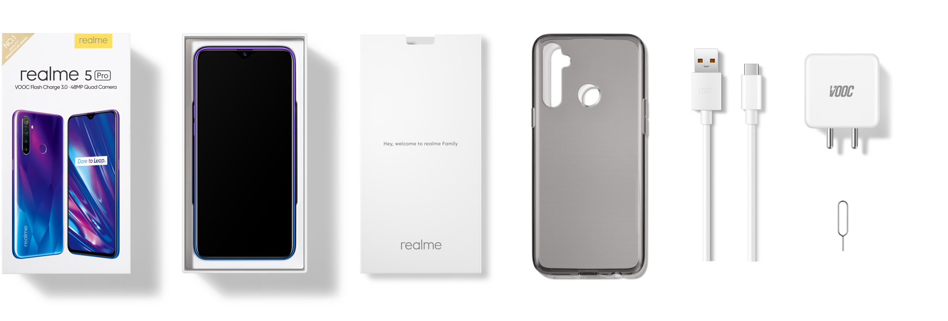 L’écran LCD de 6,3 pouces est d’une résolution de 2340 x 1080 pixels avec un rapport écran / corps de 90.6% grâce à l’encoche en forme de goutte d’eau qui abrite un capteur photo Sony IMX 471 de 16 Mpx. Le realme 5 Pro possède quatre capteur dont le principal est un SONY IMX 586 de 48 Mpx accompagné d’un grand angle de 8 Mpx, un portrait de 2 Mpx et d’un 2 Mpx pour la macro. En dessous, se loge le capteur d’empreintes digitales.