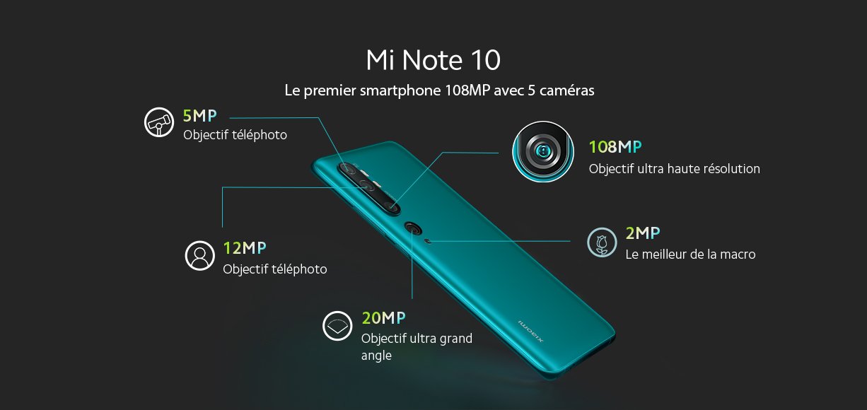 Xiaomi a présenté, le 6 novembre 2019, le Mi Note 10 équipé d’un capteur photo principal de 108MP !