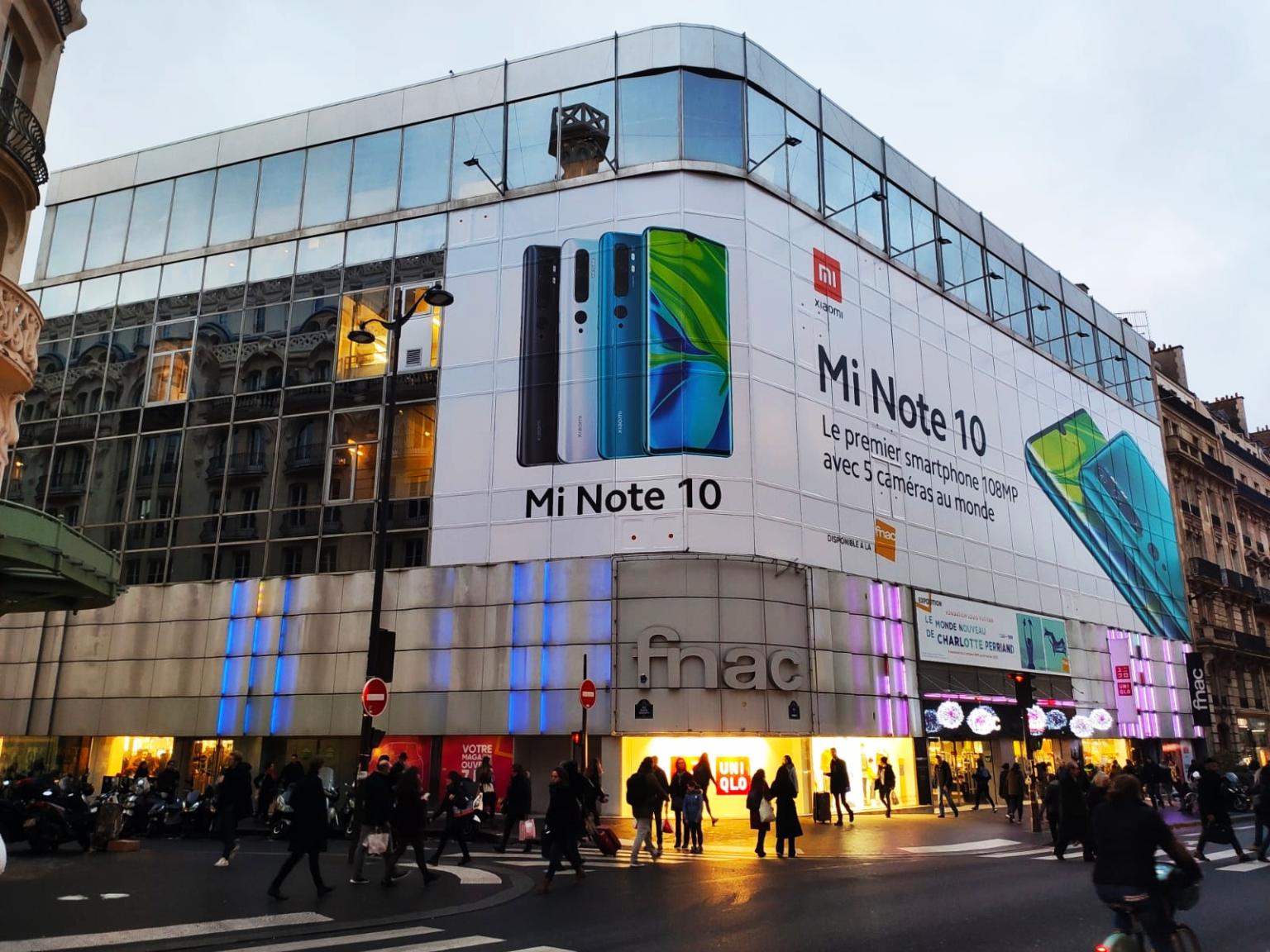 Les passants peuvent maintenant voir une énorme publicité mettant en avant le Mi Note 10, sur la façade de la FNAC Paris Montparnasse.