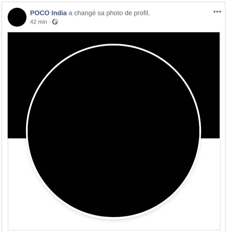 Le jeudi 16 janvier 2020, la page Facebook POCO India est passée au noir. En effet, la photo de profil et la photo de couverture sont noirs, sans explication.