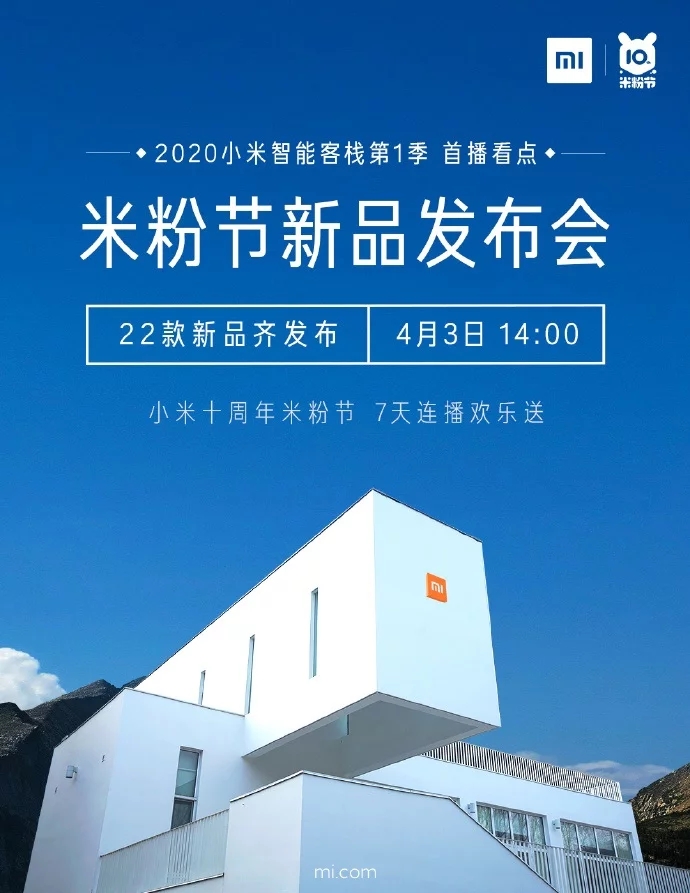 La marque, qui va fêter ses 10 ans, tiendra le Mi Fan Festival 2020 le 3 Avril 2020 pour y présenter 22 nouveaux produits dont la majorité devraient être des objets connectés. Il est probable que Xiaomi dévoile le tracker d’activité Mi Band 5 et des rééditions de ses produits phares. De nombreuses promotions à travers le monde devraient également être au rendez-vous.