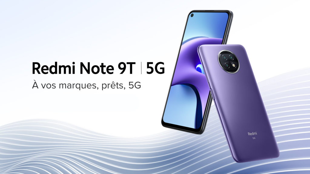 - Le Redmi Note 9T 5G est disponible dans deux coloris indémodables : Noir Crépuscule et Violet Aurore, à partir du 15 janvier dans la version 4+128 Go à 269,90€ chez les opérateurs Orange, SFR, Bouygues, Free et chez Fnac, Darty, Boulanger, Cdiscount, Rue du Commerce et LDLC.