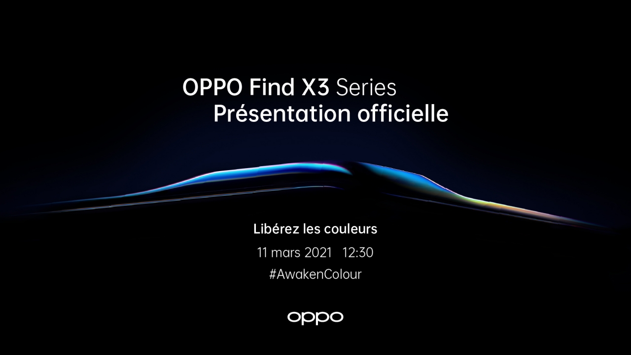 OPPO France a publié sur les réseaux sociaux la date de lancement de la gamme Find X3 qui devrait comprendre, comme la précédente génération, trois modèles : Find X3 Lite, Find X3 Neo et le haut gamme Find X3 Pro. Le rendez-vous est donné le 11 Mars 2021 à 12H30 (heure française).