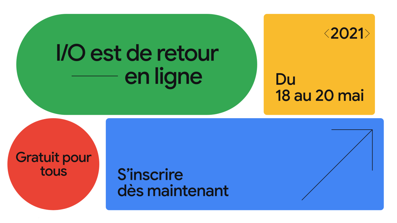 Le rendez-vous pour le Google I/O 2021 est donné du 18 au 20 mai 2021, avec un événement uniquement en ligne où des sessions seront proposées gratuitement aux intéressés (développeurs). Google devrait y dévoiler les nouveautés de Android 12 qui est actuellement en stade de développement, mais aussi évoquer les nouveautés de ses différents produits et services.