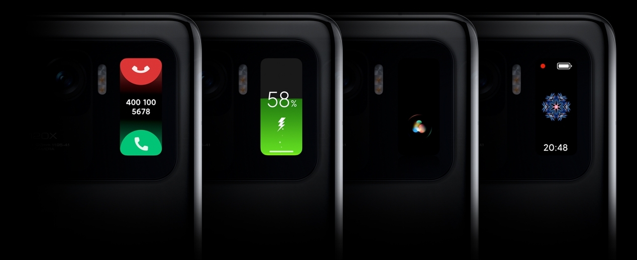 Le petit écran AMOLED de 1,1 pouce situé au dos, à côté des capteurs photo, permet d’afficher les notifications, l’heure, les selfies et plus encore. Cet écran n’a pas été initialement développé pour le Mi 11 Ultra parce qu’il s’agirait de l’écran qui équipe le tracker d’activité Mi Band 5. En effet, cette information aurait été donnée par le PDG de Xiaomi lors d’une interview pour IThome.