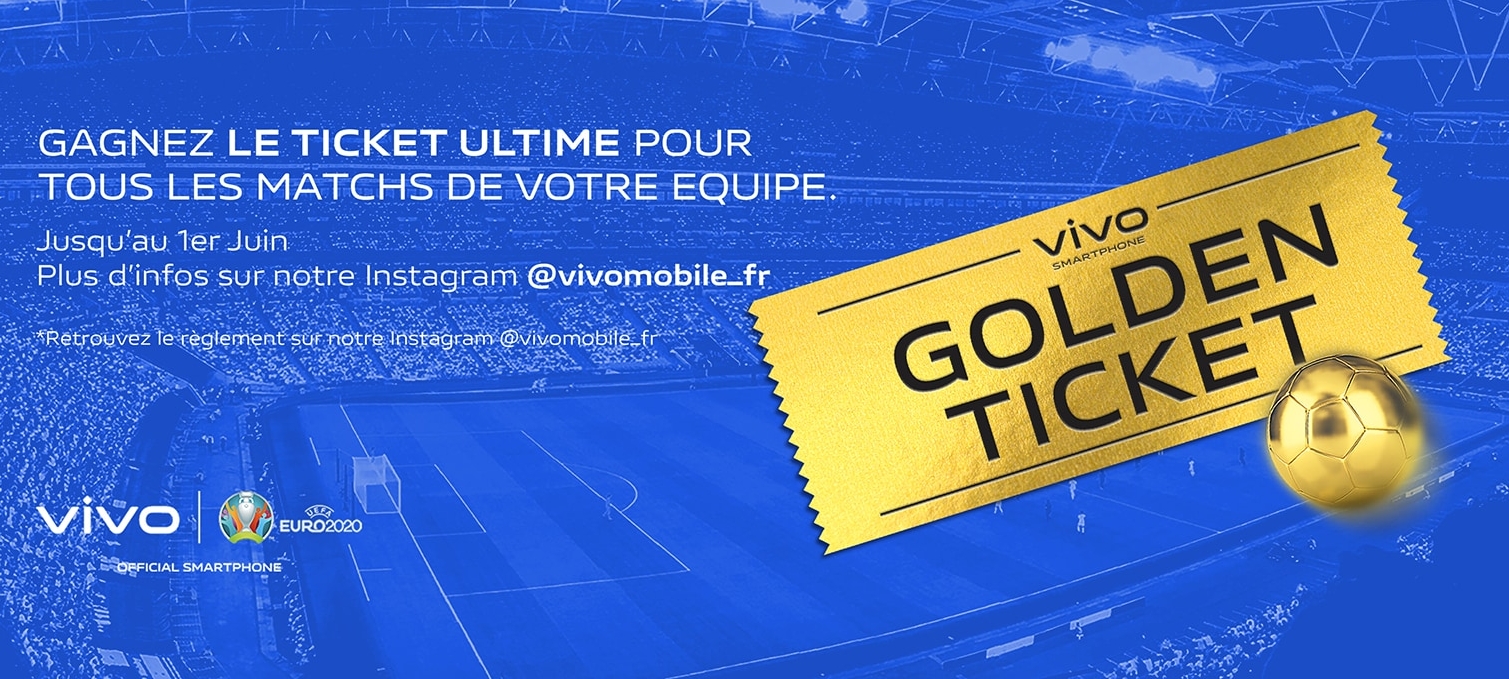 Du 11 juin au 11 juillet 2021 se déroulera l’EURO 2020 dont Vivo est partenaire. Pour fêter cet événement et le lancement du Vivo X60 Pro, vivo France met en jeu deux Golden Ticket pour permettre à quatre chanceux de participer à tous les matchs de la France pendant l’EURO 2020.
