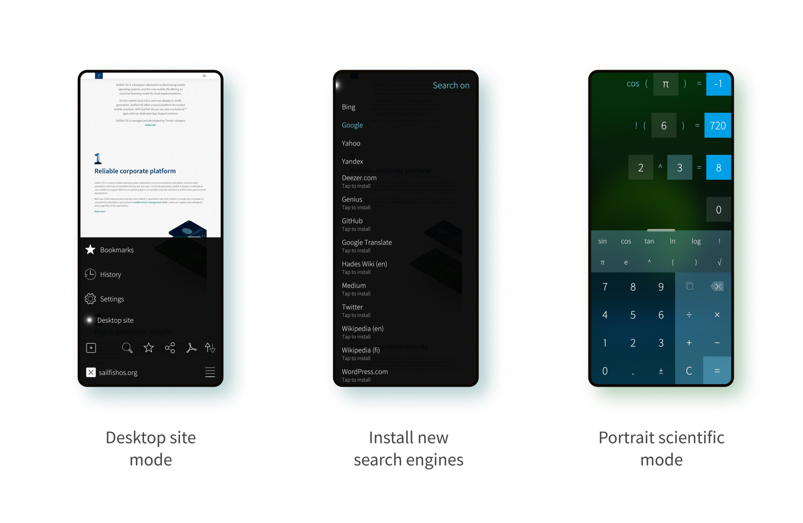 Autres petites nouveautés, la possibilité d’afficher la version PC des sites internet, le choix du moteur de recherche par défaut et un mode portrait pour la calculatrice scientifique.