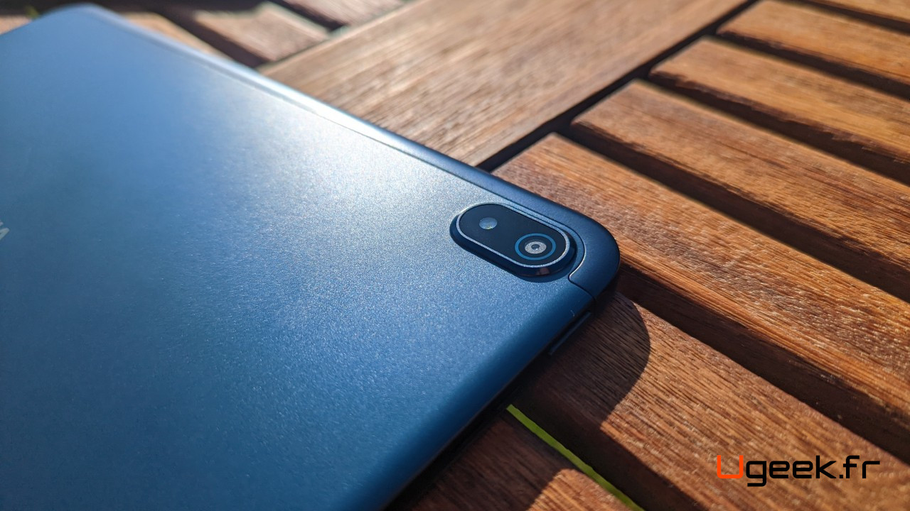 La caméra frontale de 5 MP est logée dans l’épaisseur d’un centimètre entre l’écran et le bord. La caméra arrière est quant-à elle logée dans une légère protubérance ovale, avec le flash LED. La partie photo est cependant décevante.
