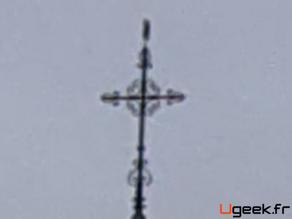 Côté zoom, il est bon jusqu’à X20, devient moyen à partir de X30 et n’est pas recommandé jusqu’à X100 où le flou est très présent, surtout sur les objets lointains. Sur la panneau « LIMITE DE PECHE », le zoom x100 est correct avec le « L » de la quatrième photo, par contre, le cloché de l’église (dernière photo) n’est clairement pas exploitable. Vous l’aurez compris, mieux vaut rester raisonnable dans l’utilisation du zoom qui fait très bien son job dans la fourchette X1 à X30.