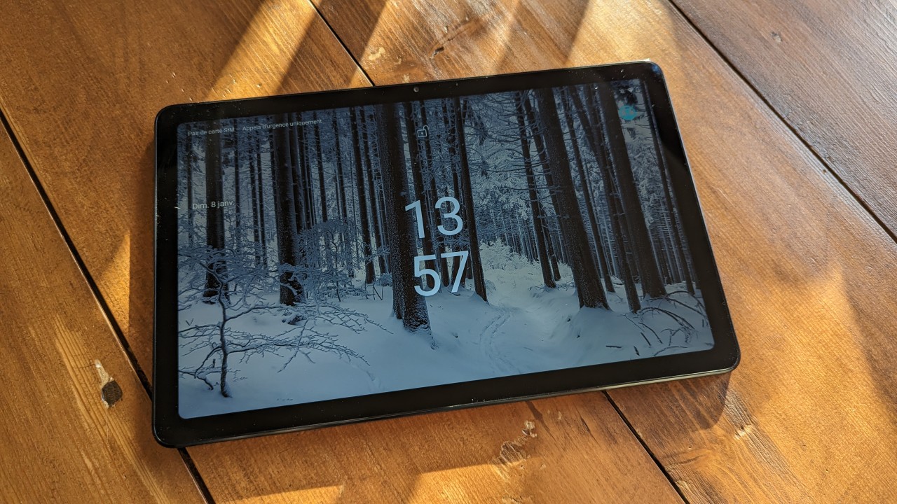 L’écran est de 10,36 pouces au format 5:3, sensiblement identique à celui de la Nokia T20 avec un taux de rafraîchissement jusqu’à 90 Hz. La visibilité en intérieur est parfaite, un peu moins en extérieur par jour de beau temps, les reflets n’aidants pas. Pour expliquer la visibilité pas évidente en plein soleil, c’est que l’écran est donné à 360 nits (unité de mesure permettant d’apprécier la luminosité d’un écran), là où il faudrait au moins le double pour un meilleur confort.