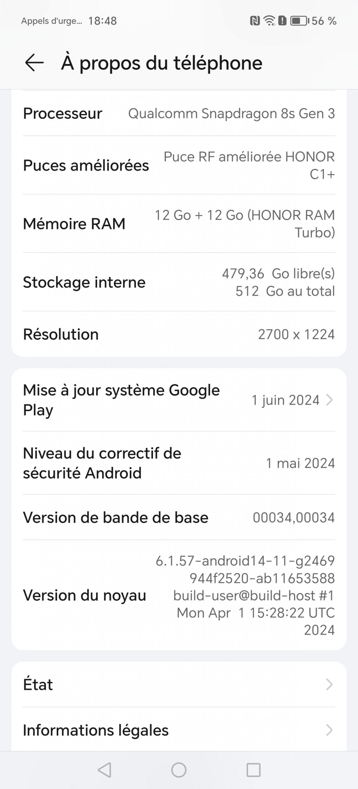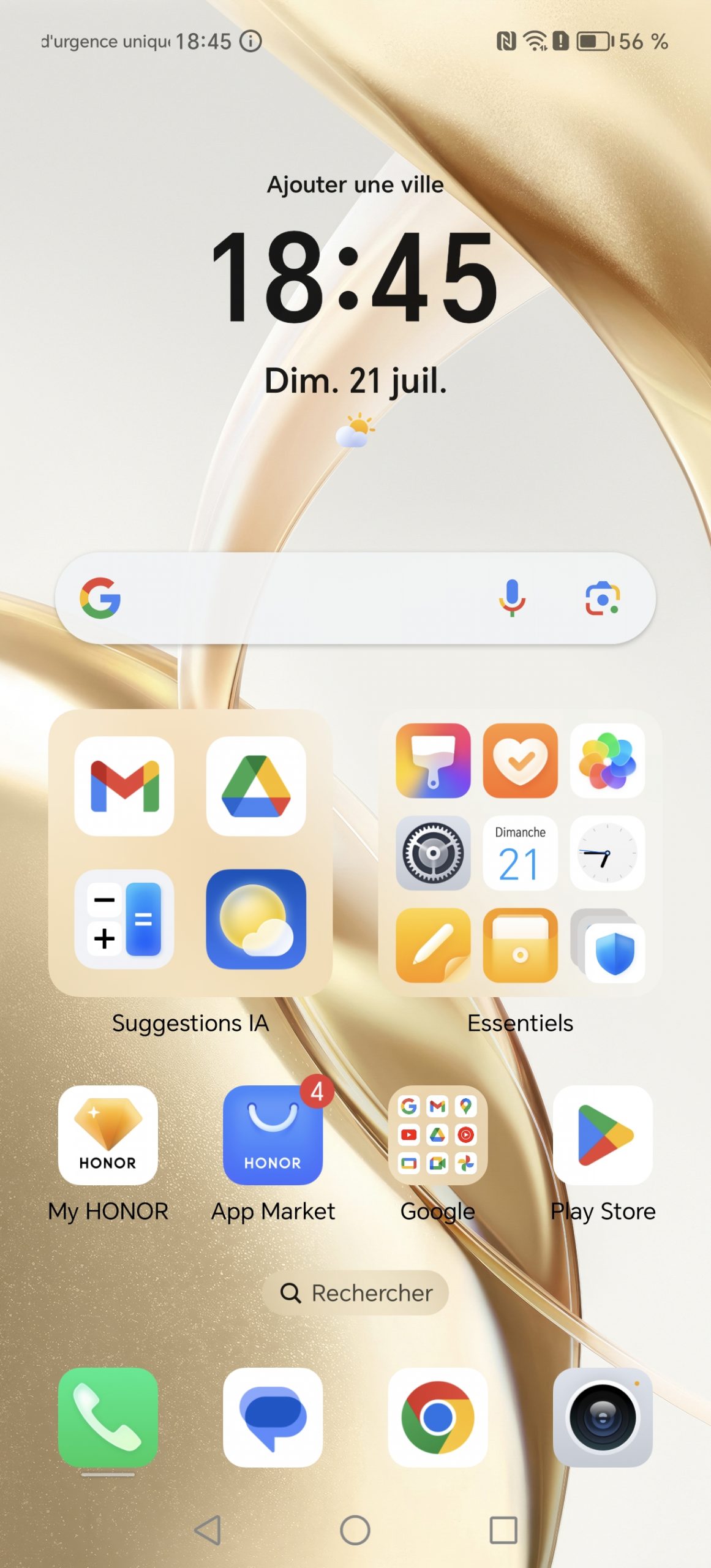 L’interface MagicOS 8.0 (Android 14) avec les applications par défaut et la gestuelle à trois boutons (oui, je navigue à l’ancienne 😌 ).