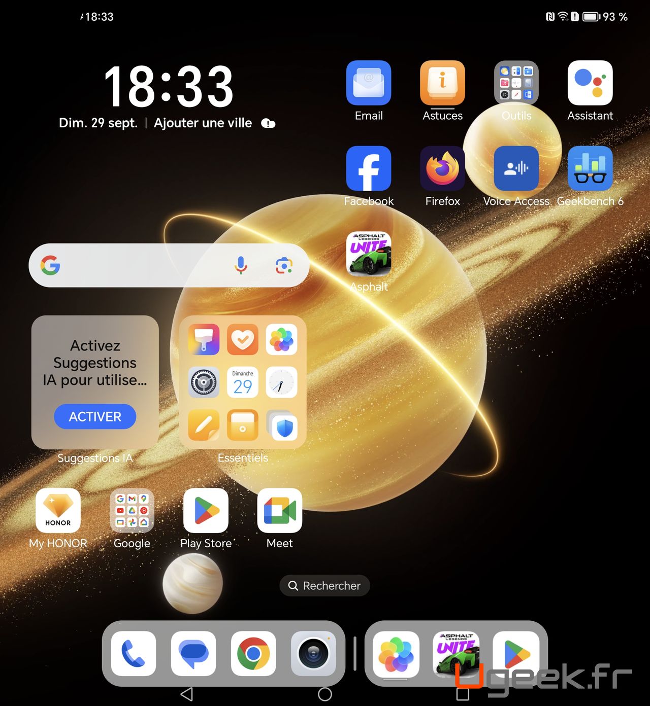 En sortie de boite, le HONOR Magic V3 est propulsé par MagicOS 8.1.0 basé sous Android 14 avec une mise à jour majeure vers Android 15 de prévue. L’interface est identique au reste de la gamme et s’adapte parfaitement au format tablette.
