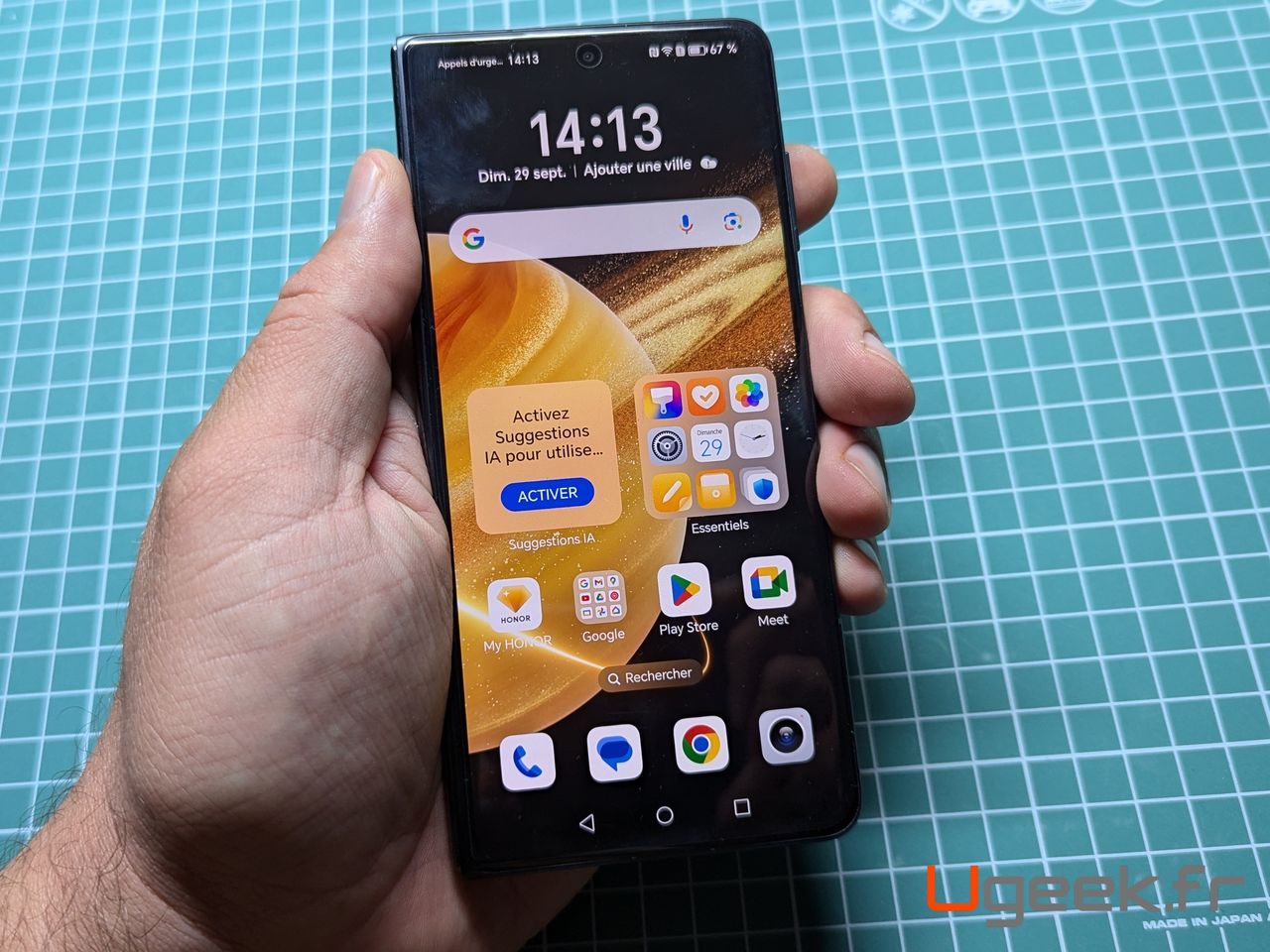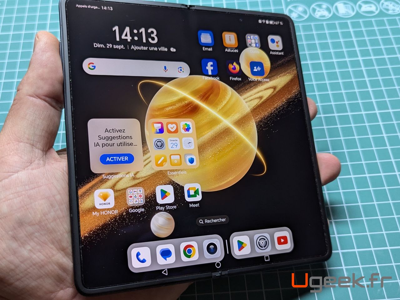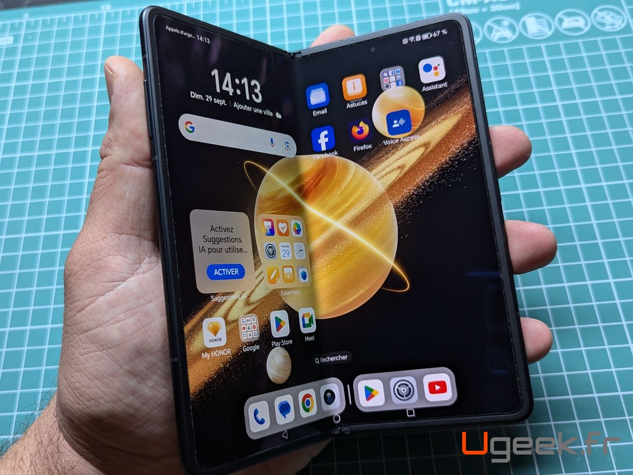 Comme décrit dans les caractéristiques, il est protégé IPX8 soit résistant aux éclaboussures et à l’eau. Bien entendu, nous n’allons pas faire le test, mais c’est un gage de qualité surtout pour un smartphone pliable.