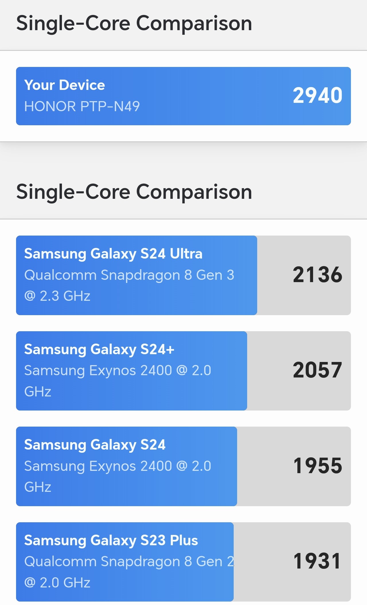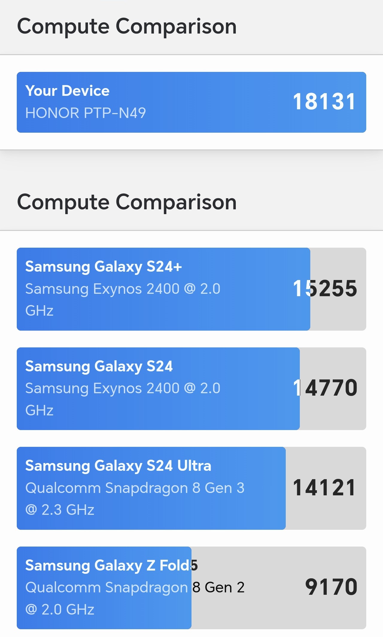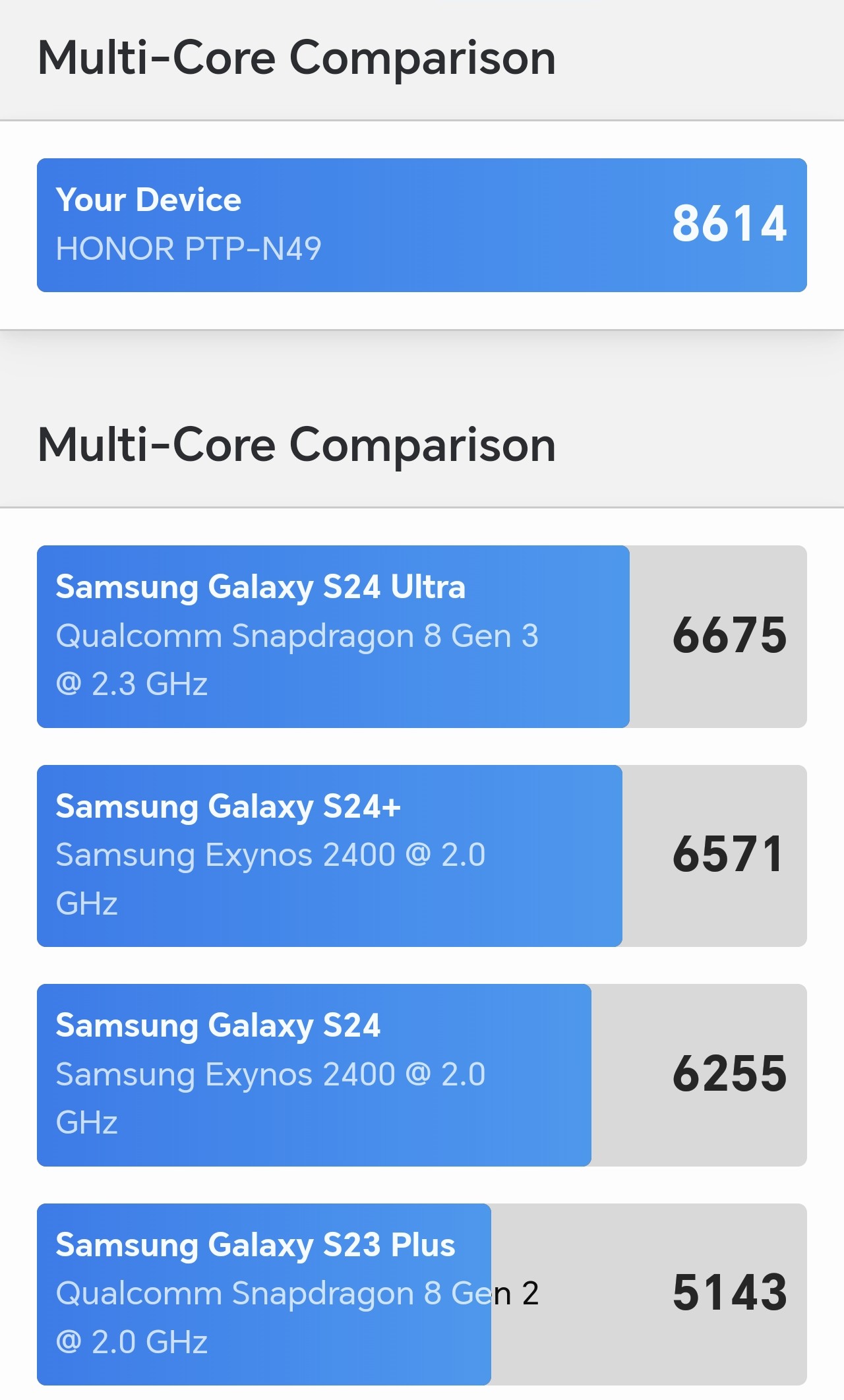 Les chiffres parlent d’eux-mêmes, le HONOR Magic 7 Pro se hisse en haut du classement. Que ce soit la gestion du multi-tâche, la bureautique, le visionnage de vidéos et autres, impossible de le pousser à la limite de ses retranchements. Par défaut, Geekbench propose de comparer le HONOR Magic 7 Pro au fleuron concurrent, le Samsung Galaxy S24 Ultra. L’écart des performances est déjà assez important avec, bien entendu, le podium pour le HONOR.