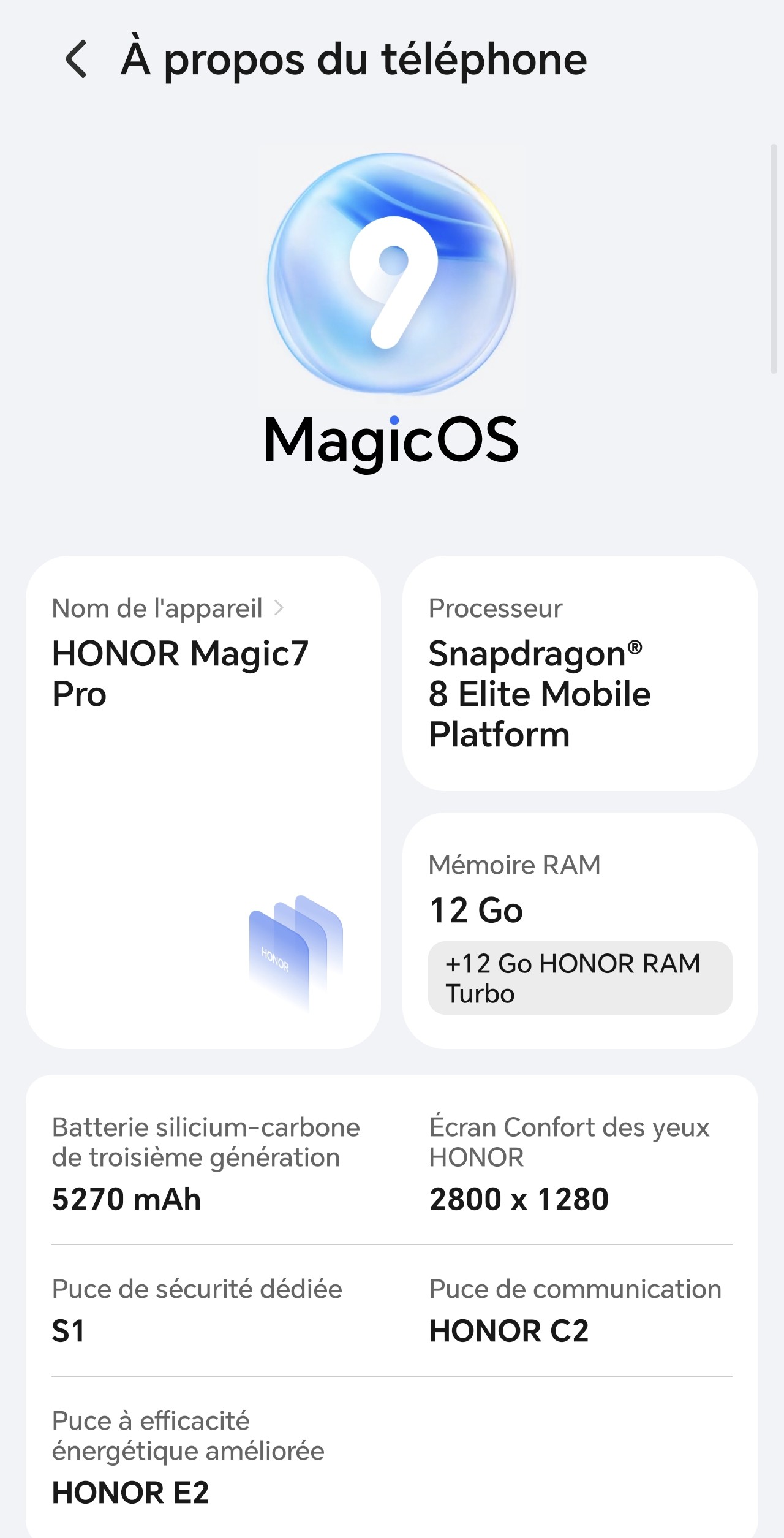 Caractéristiques du HONOR Magic 7 Pro