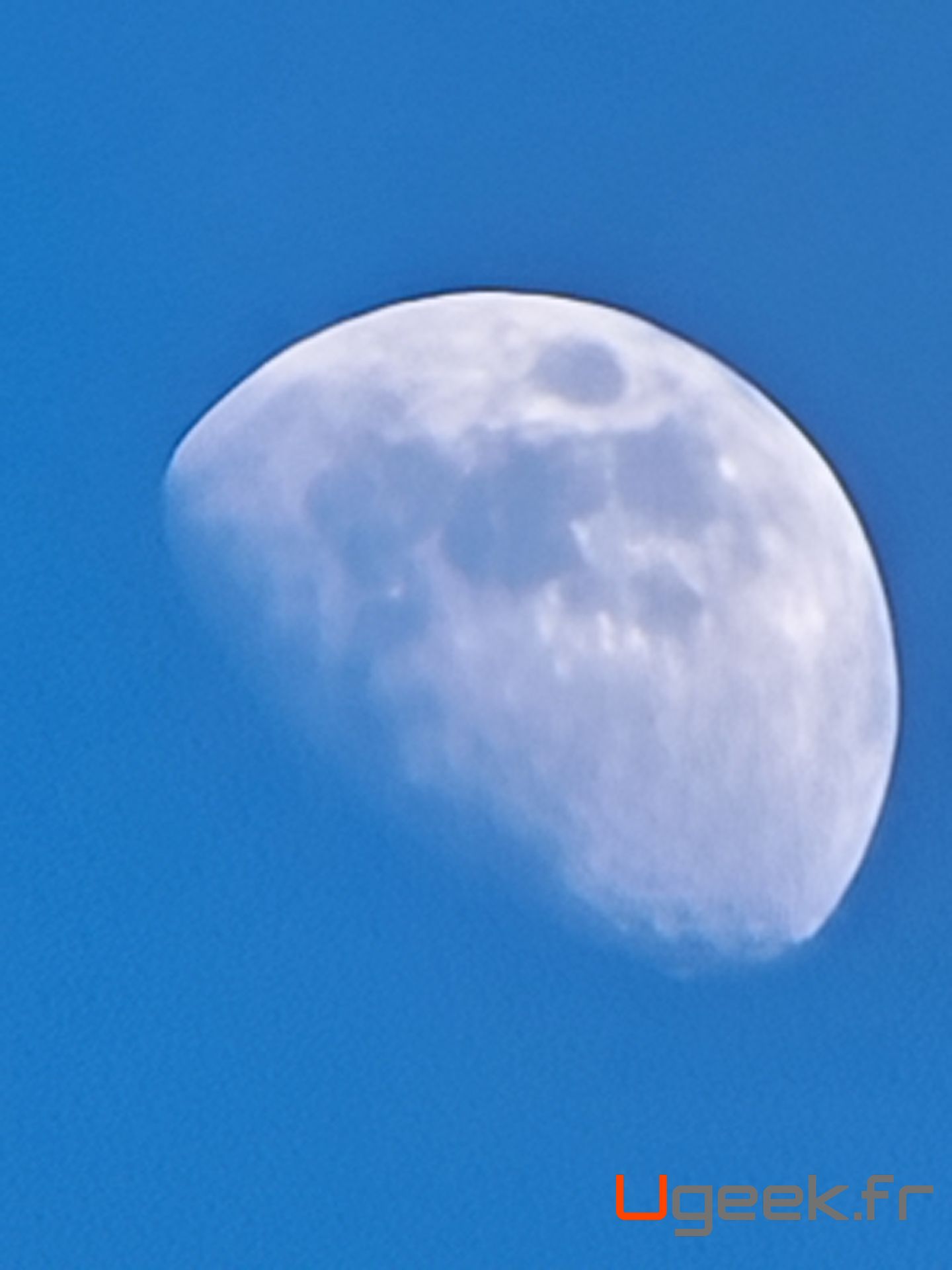 On démarre avec une photo de la lune au zoom x100 avant le coucher du soleil. Le rendu est tout simplement impressionnant ! La stabilisation optique / numérique est très efficace, le contour reste net et la distinction des cratères donne le même effet qu’aux jumelles.
